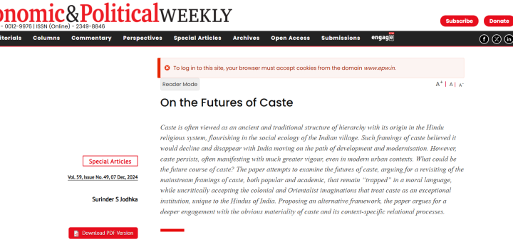 S. Jodhka, Surinder. 2024. “On the Futures of Caste.” Economic and Political Weekly.