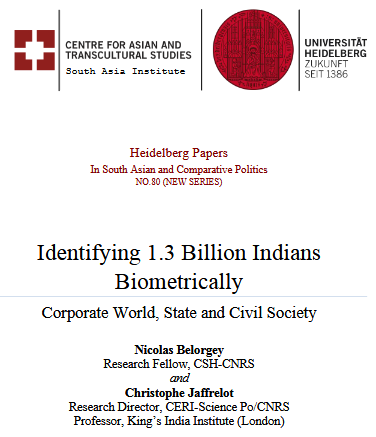 Nicolas Belorgey & Christophe Jaffrelot (2021), “Identifying 1.3 Billion Indians Biometrically” Heidelberg Papers in South Asian and Comparative Politics , (16 July 2021)