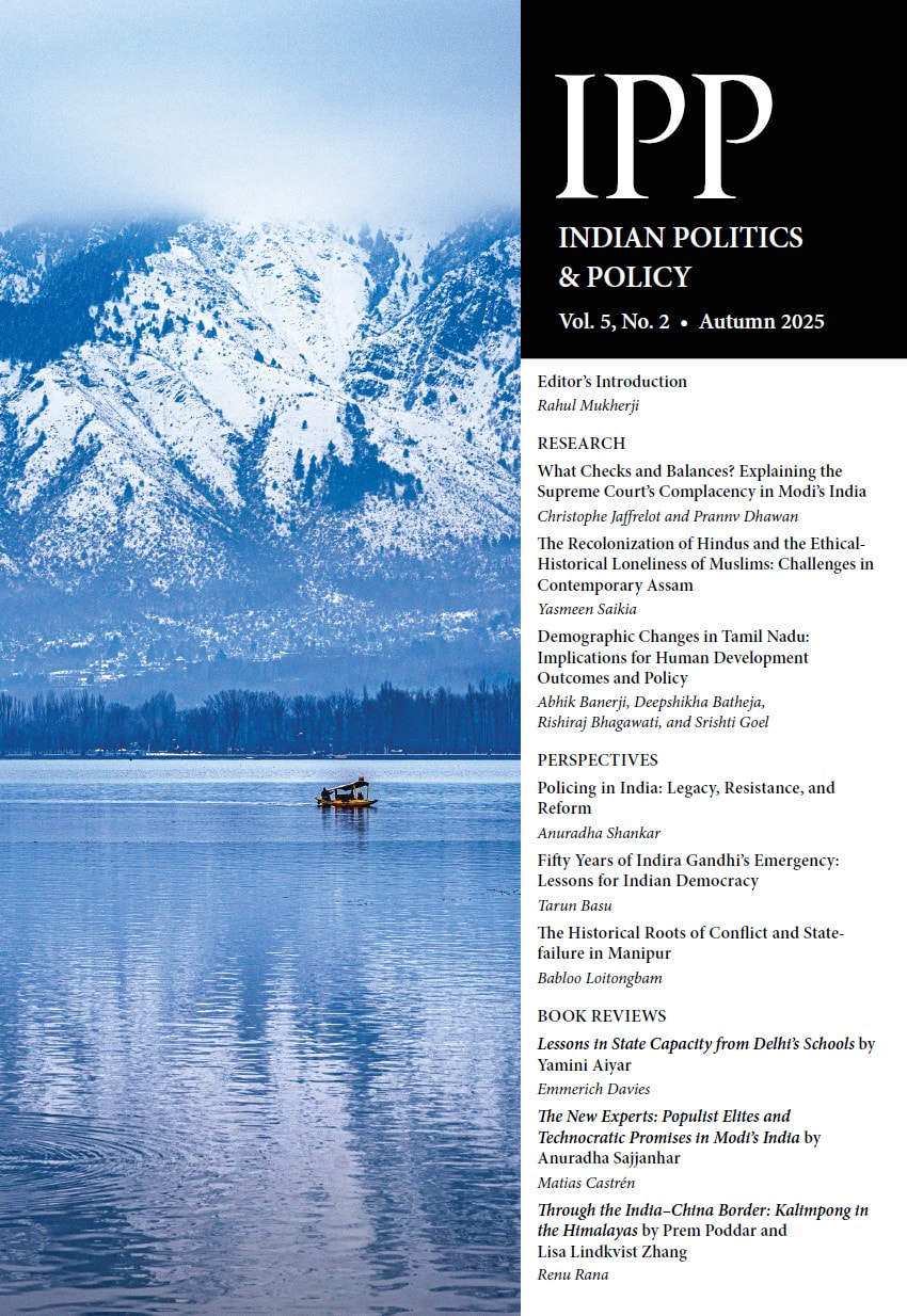 Jaffrelot, Christophe, and Prannv Dhawan. “What Checks and Balances? Explaining the Supreme Court’s Complacency in Modi’s India.” Indian Politics & Policy, 2025.
