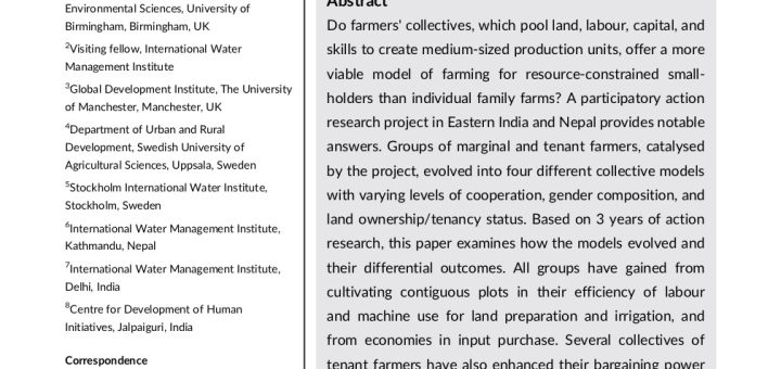 Sudgen, F., Agarwal, B., Leder, S., Saikia, P., Raut, M., Kumar, A., & Ray, D. (2020). Experiments in farmers’ collectives in Eastern India and Nepal: Process, benefits, and challenges. Journal of Agrarian Change.