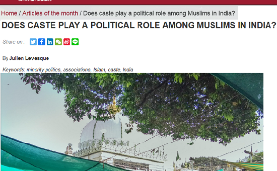 Levesque J.(2021). Does Caste Play a Political Role Among Muslims in India, GIS ASIE (April 21)