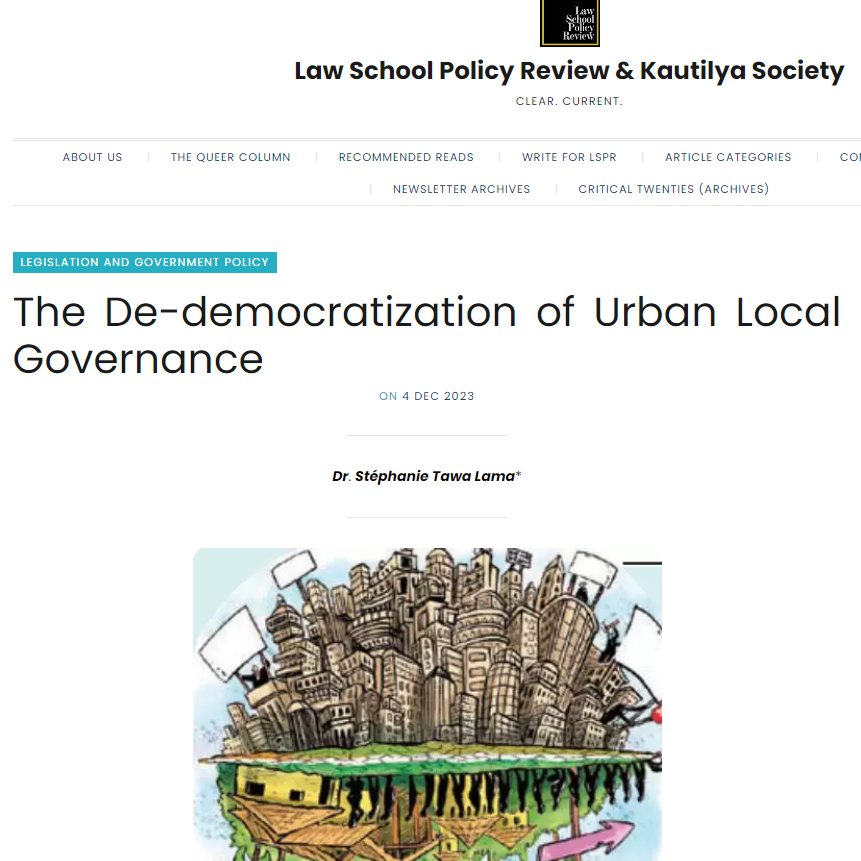 Tawa Lama, Stéphanie. 2023. “The De-Democratization of Urban Local Governance.” Law School Policy Review & Kautilya Society.